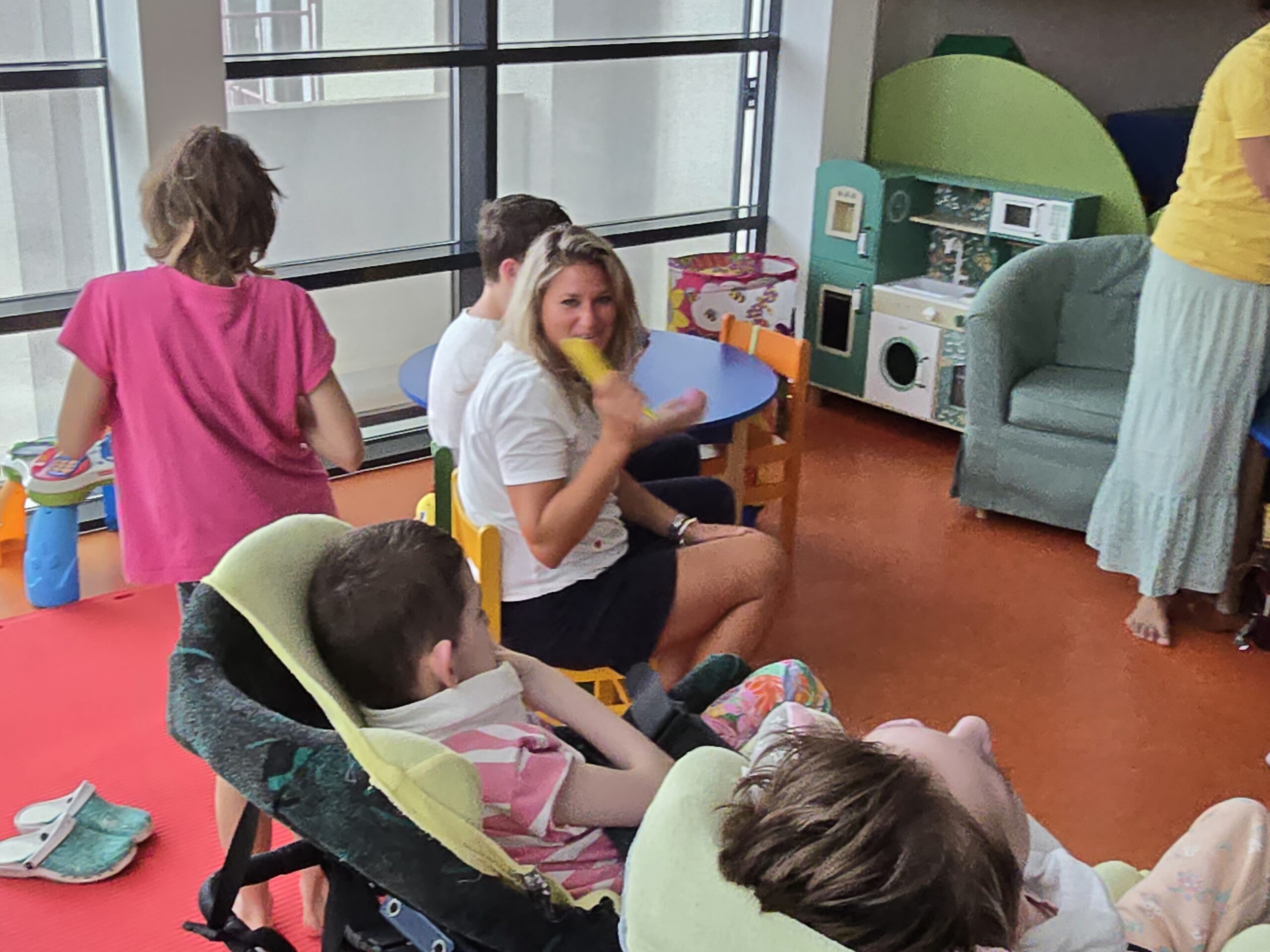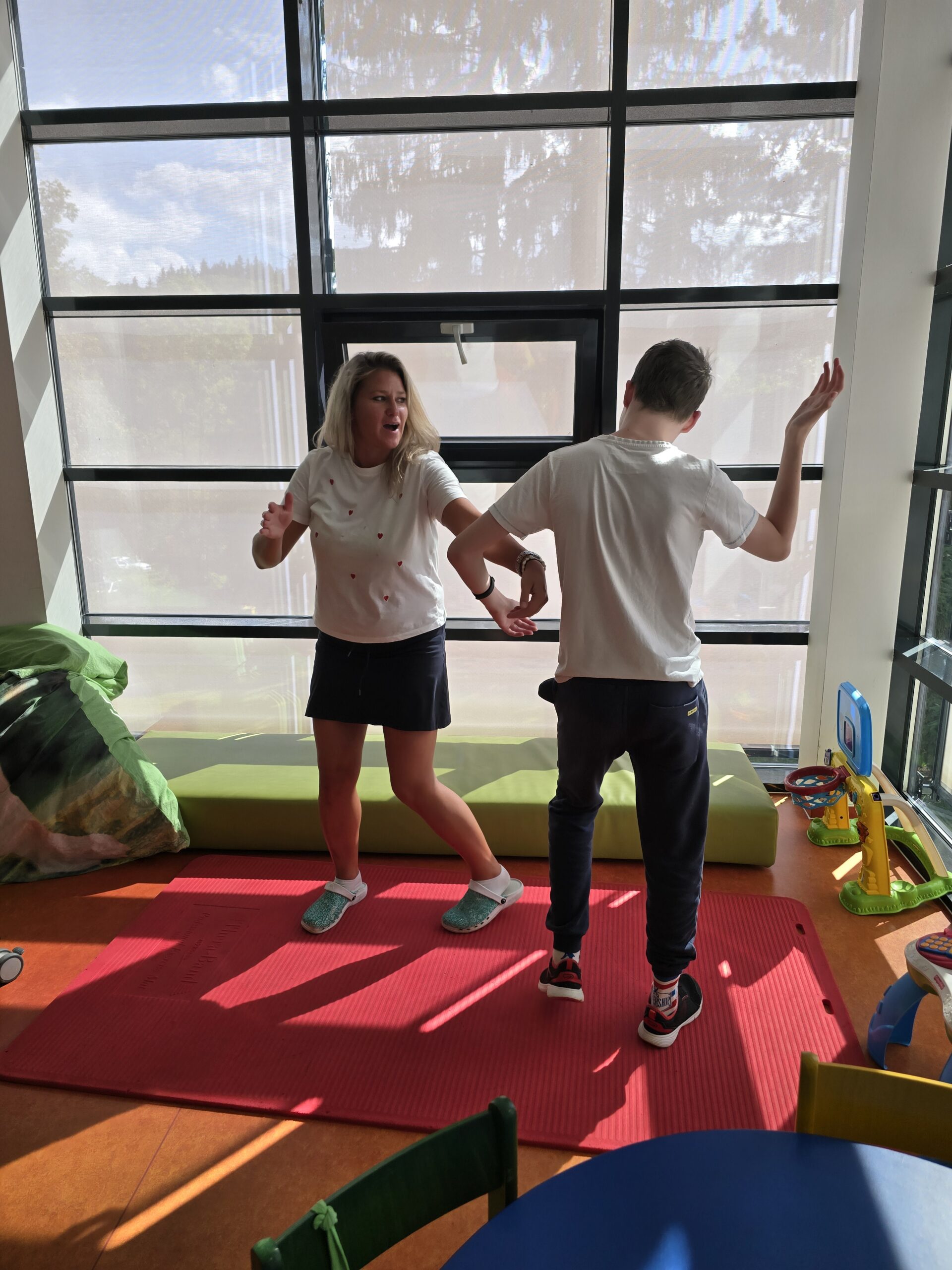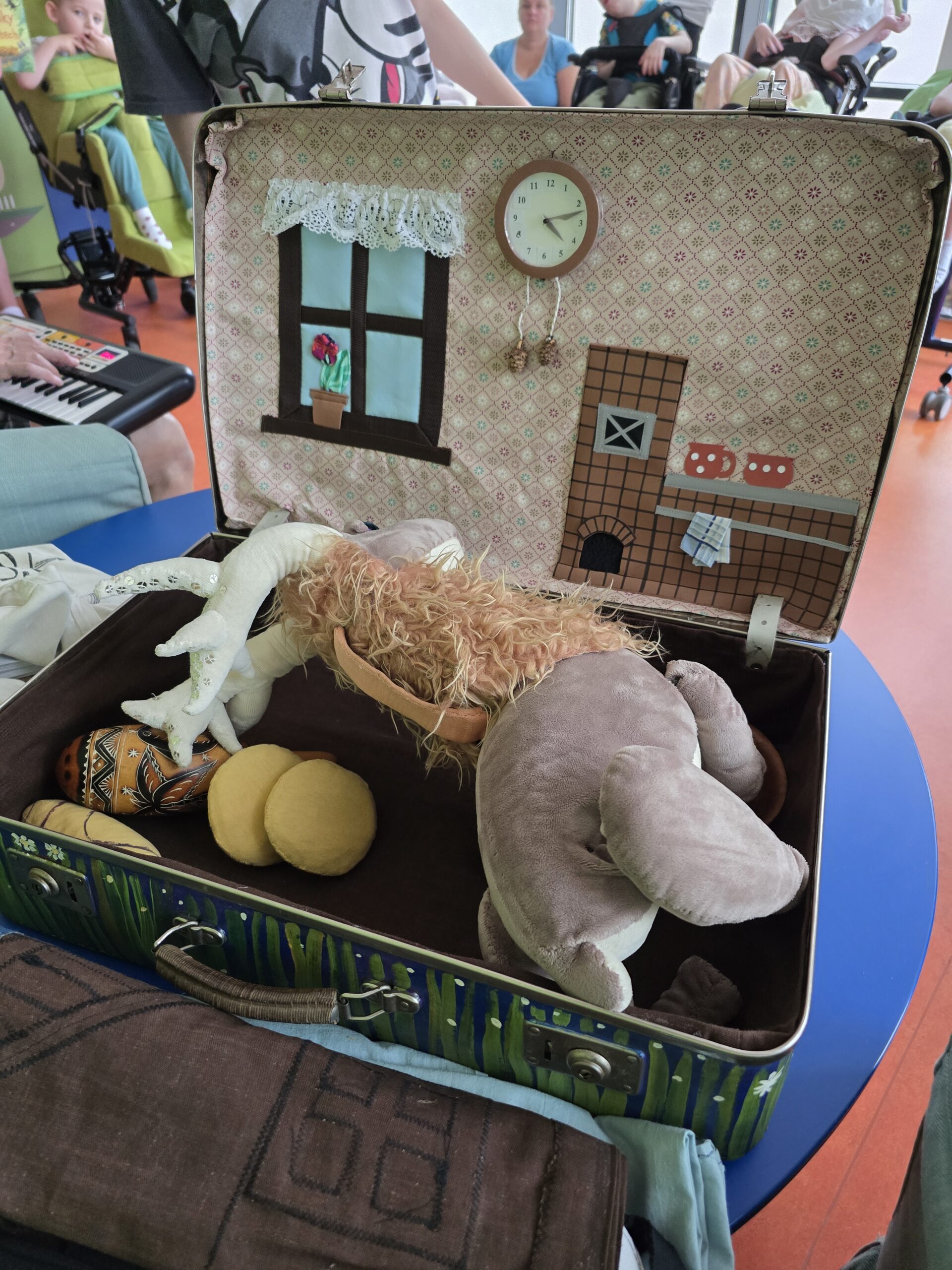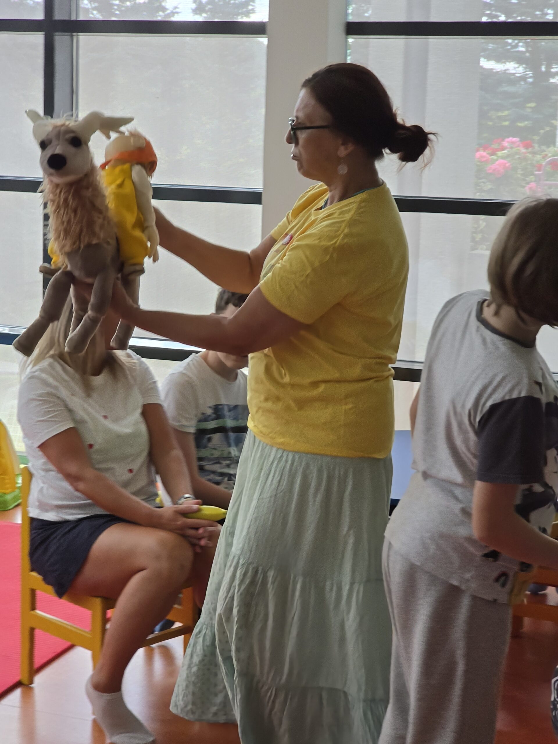 Na herně bylo díky nim zas veselo, dokonce se tentokrát i tančilo! Pohádka byla o Budulínkovi a jeho jelenovi, který se rozběhl kolem všech dětí. Budulínek si prohlédl, jakou barvu mají oči všech dětí a naučil se jejich jména. A mezi tím se zpívalo a tančilo. Zazpívali jsme si repertoár dětských písní, písní pana Svěráka, Šípa a Uhlíře a písně pohádkové. Děkujeme za takovou milou návštěvu a atmosféru, kterou jste u nás zanechali.