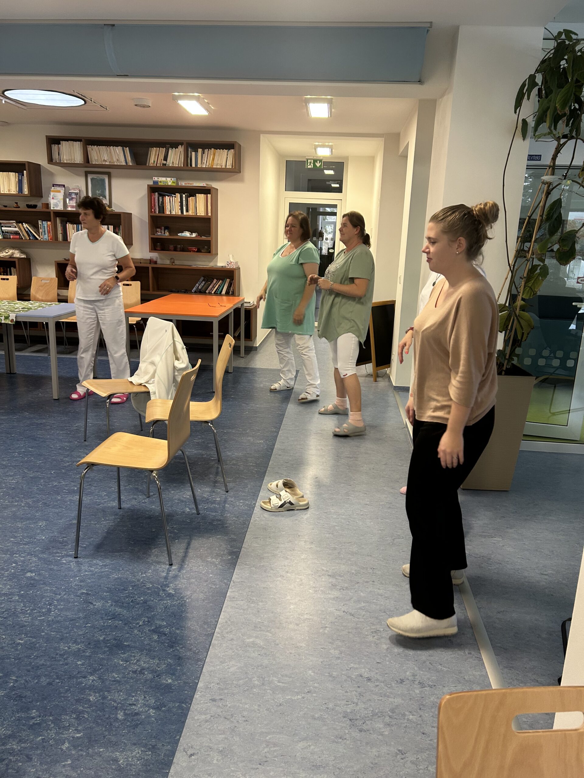 Během relaxace muzikoterapeutky s nástroji obcházely jak děti, tak personál. Připravily si také tvoření s andělskými křídly, které využil hlavně personál, zatímco děti si mezitím užívaly hudebních nástrojů a zpěvu. Celý program se nesl v příjemné atmosféře. Některé děti velmi bavil volný pohyb ve velkém prostoru jídelny, kde tak často na zemi nebývají.