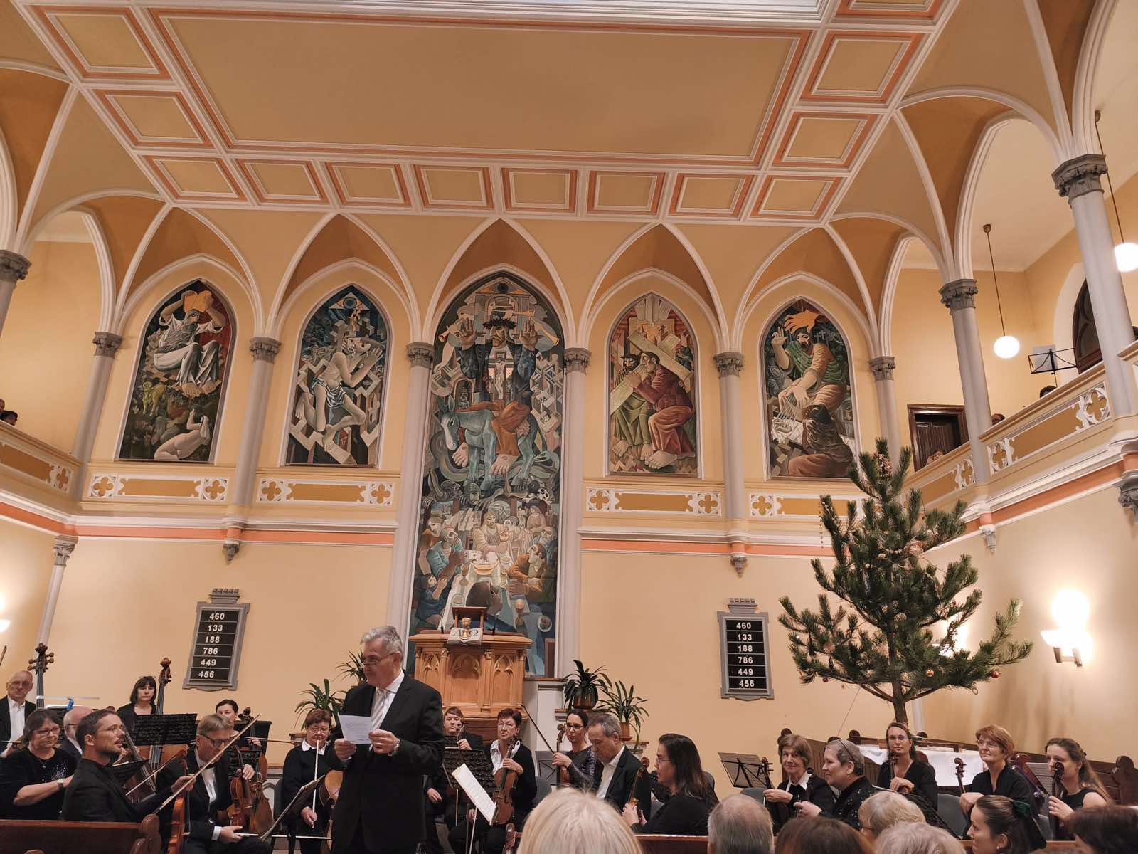 I v pražské modlitebně zazněla známá slova „Hej mistře, vstaň bystře, shlédni na jasnost, z nebes na švarnost, krásu uhlídáš, v tento noční časn…….“. Krásně zdobený prostor modlitebny povznesl společně s hudbou všechny přítomné blíže k vánočním svátkům. Není asi Čecha, který by „Rybovku“ neznal. Každoroční opakování této mše znamená tedy pro přítomné něco známého, krásného, bezpečného. Moc si vážíme toho, že z výtěžku koncertu budou podpořeny děti CKP Chocerady. DĚKUJEME !!!